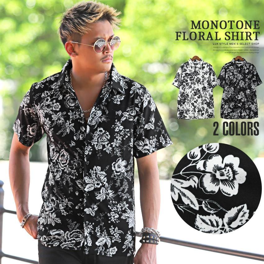 シャツ メンズ 半袖 花柄 フラワー カジュアルシャツ 柄シャツ 白 黒 総柄 リゾート ビター系 Pm 9610 Luxstyle 通販 Yahoo ショッピング